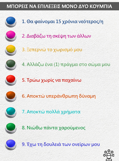 Μάλιστα, δεν χρειάζεται να ονειρευόμαστε μαγικά κουμπιά για να πετύχουμε τους στόχους μας, γιατί τέτοια κουμπιά έχουμε ήδη μέσα στο νου μας. Απλώς δεν τα έχουμε ξεκλειδώσει.